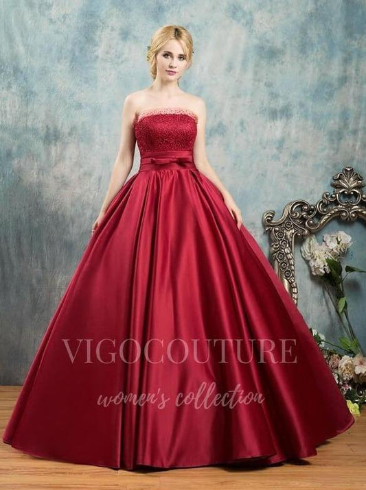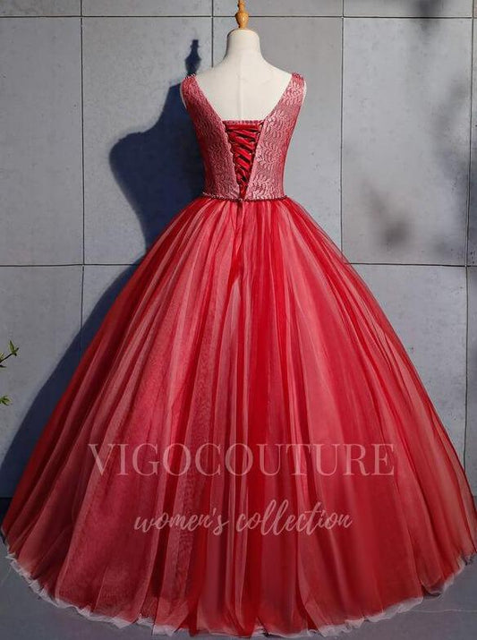 Vestidos de quinceañera con cuentas rojas y escote en V 20455