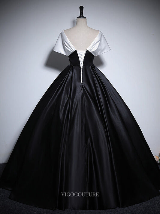 Vestidos de fiesta de satén blanco y negro con hombros descubiertos para quinceañera BG062