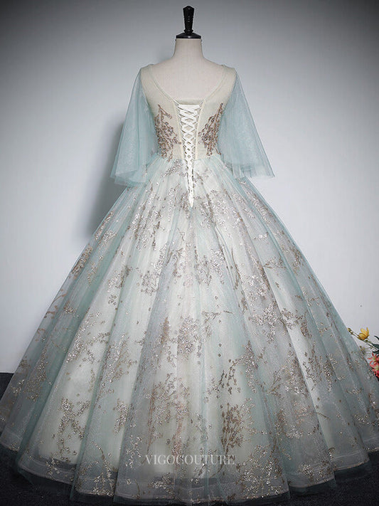 Vestidos de fiesta de tul con encaje verde brillante y manga corta, vestidos de quinceañera BG060