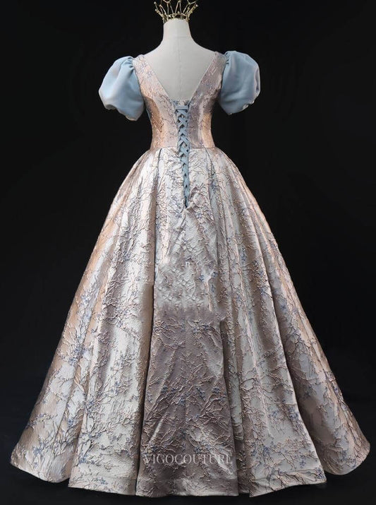 Vestidos de fiesta grises brillantes con mangas abullonadas y escote en V, vestidos de quinceañera BG040
