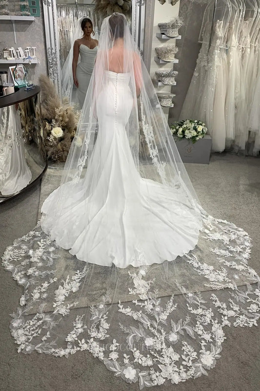 Ivory Crepe Mermaid Wedding Dress with Strapless Sweetheart Neckline, Ruched Bodice & Chapel Train – W2314
