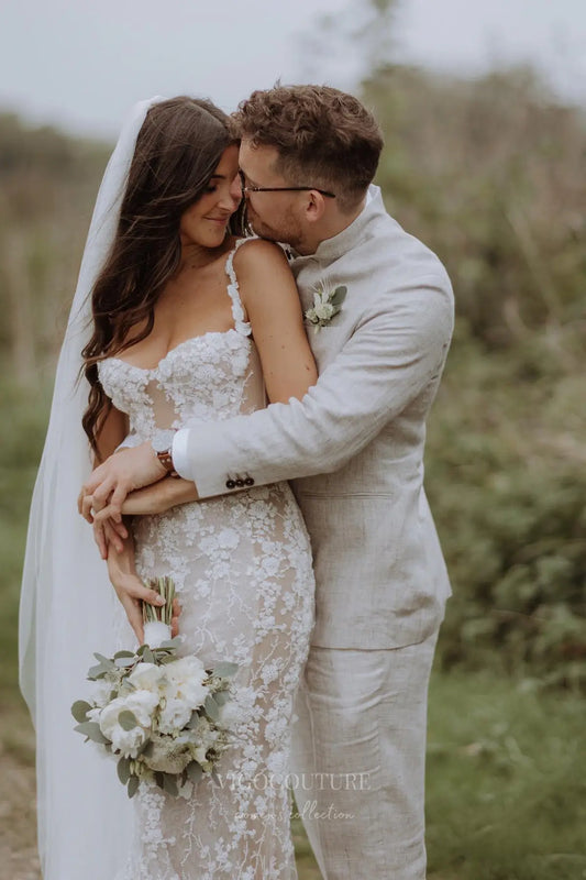 Ivory Beaded Floral Lace Mermaid Wedding Dress with Illusion Corset Bodice & Off-Shoulder Straps – W2265