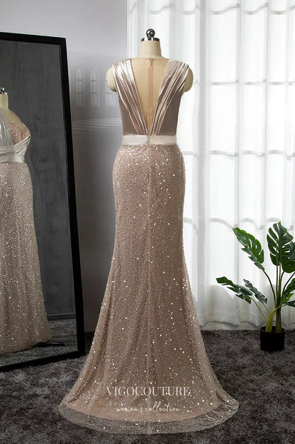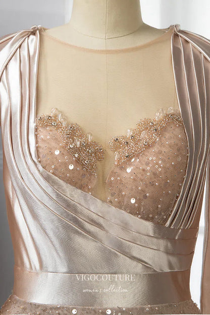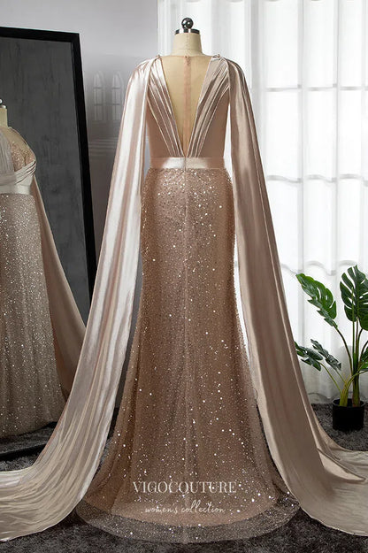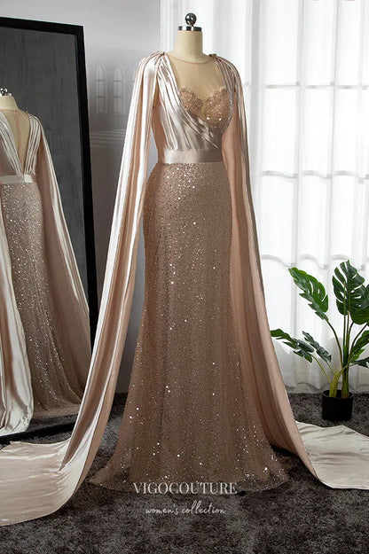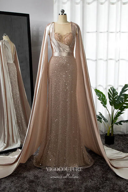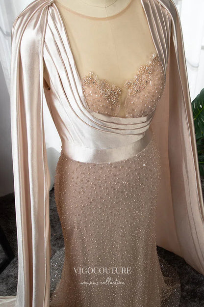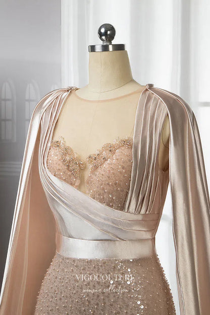 Gorgeous Pink Beaded Mermaid Prom Dress with Removable Cape Sleeve 22257