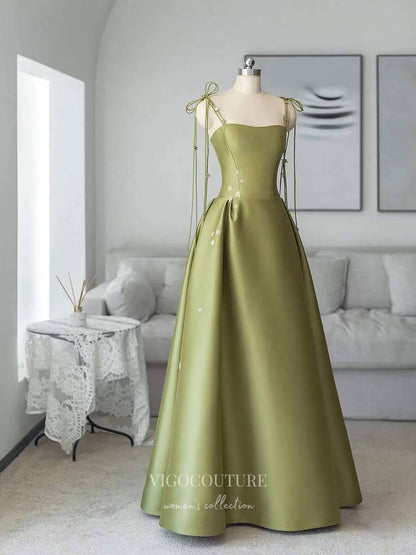 Green Spaghetti Strap Prom Dresses Starry Formal Dresses 21022