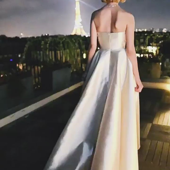 - Ivory strapless evening gown