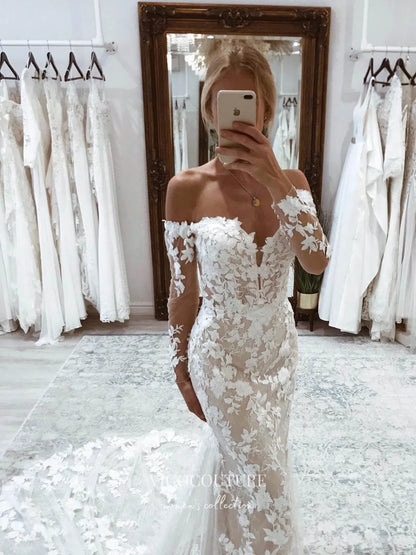 Long Sleeve Lace Applique Wedding Dresses Chapel Train Bridal Dresses W0060