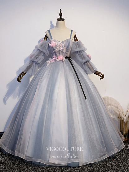 Long Sleeve Quinceanera Dresses 3D Floral Sweet 15 Dresses 21430